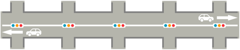 - 一般に、信号交差点の数が大きくなればなるほど系統制御は複雑になる(組合せ最適化問題)。